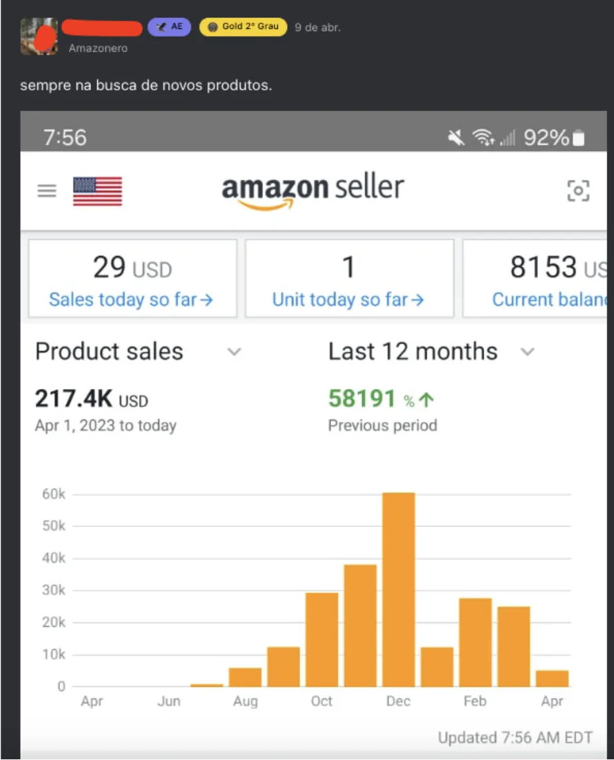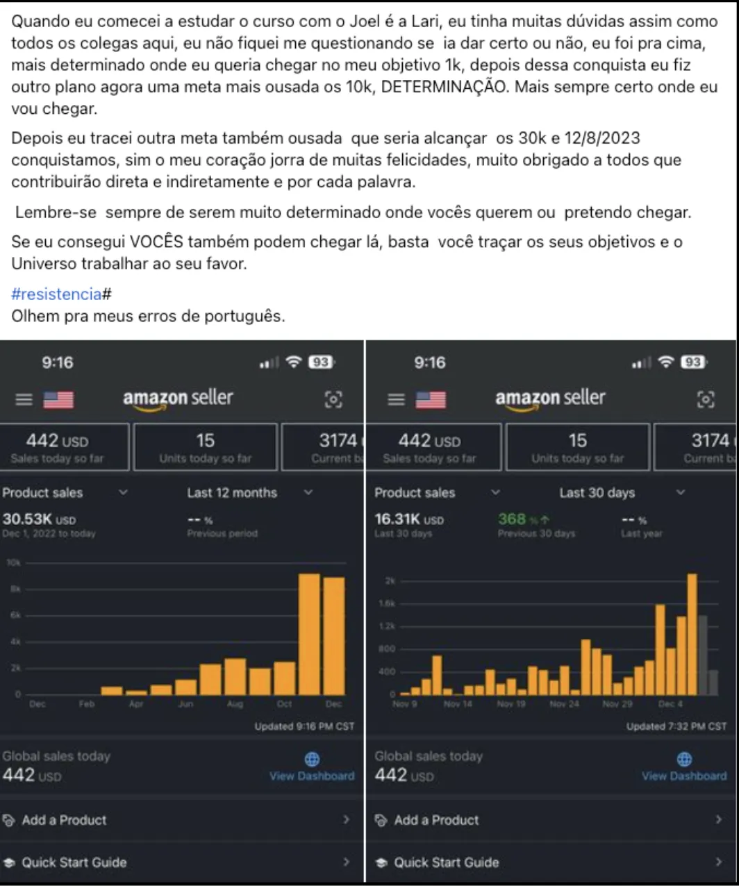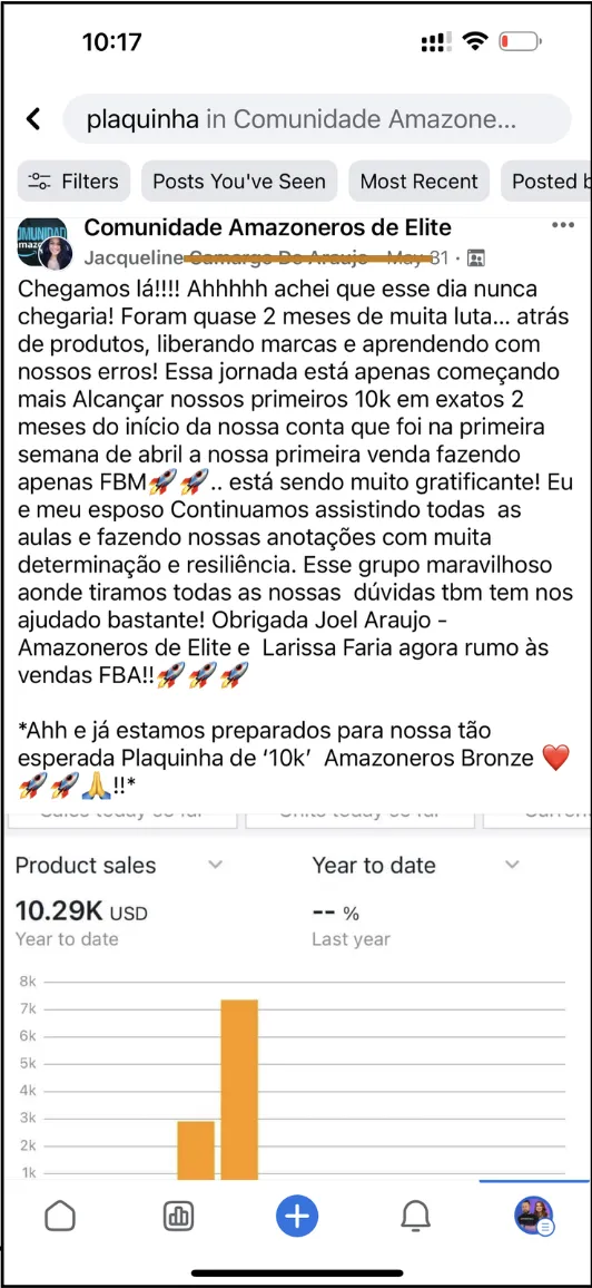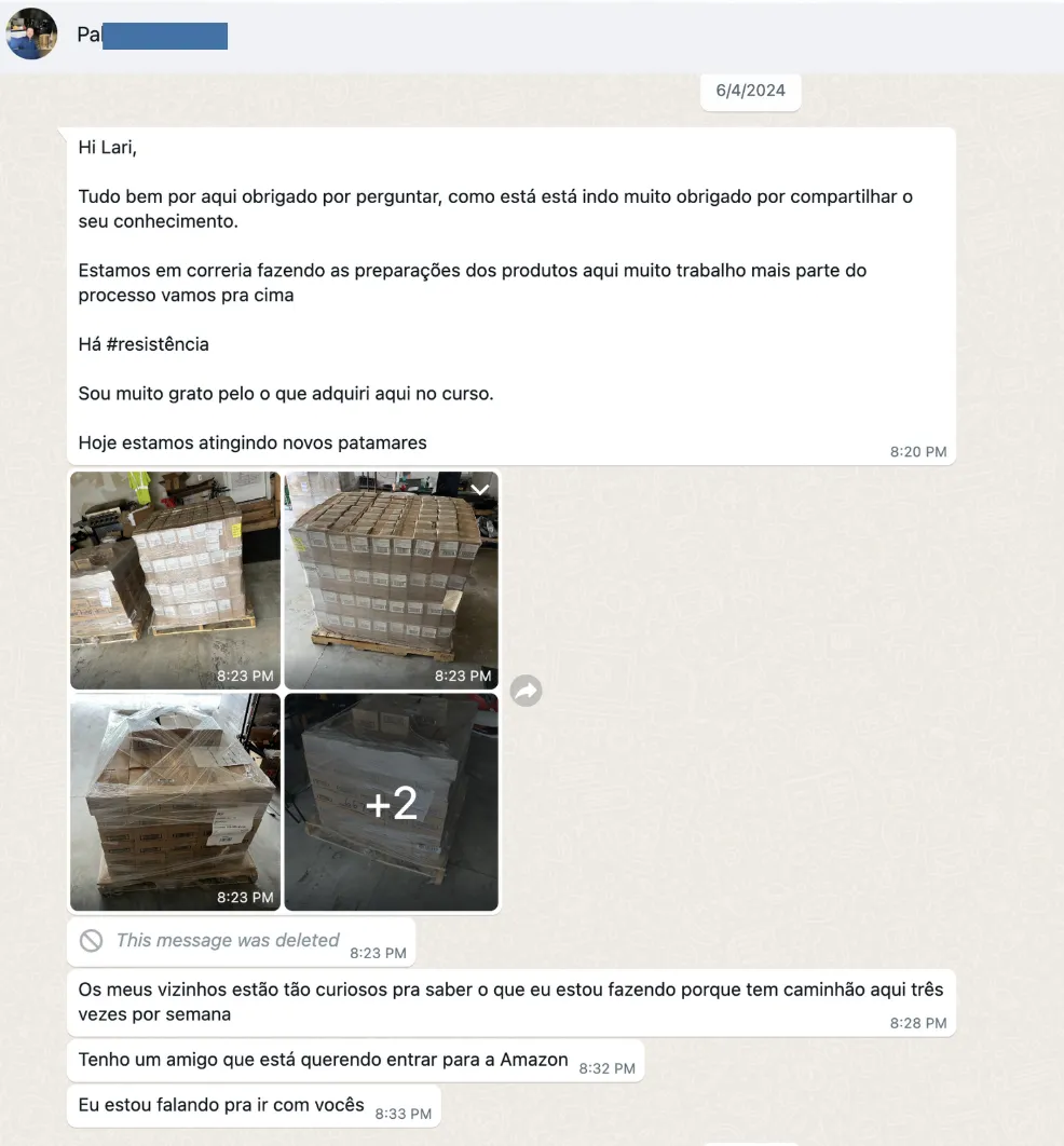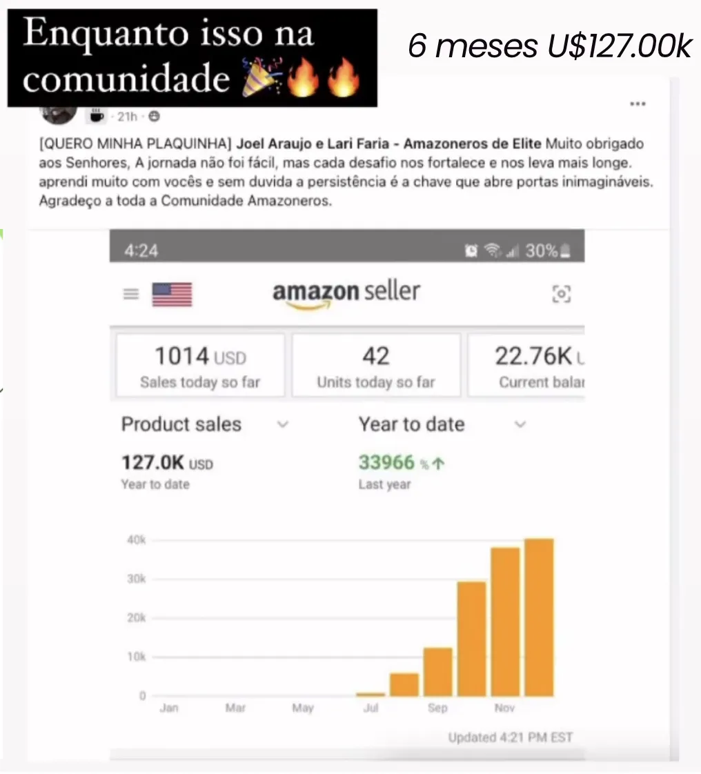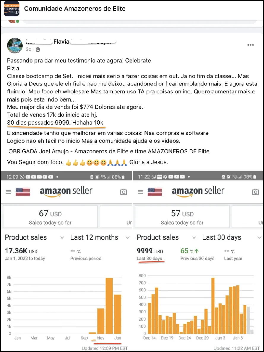 Juliana, tentou outro curso e teve prejuízo e sua conta bloqueada, mesmo assim decidiu continuar na amazon depois que conheceu o amazoneros de elite e hoje é especialista em todos os métodos.